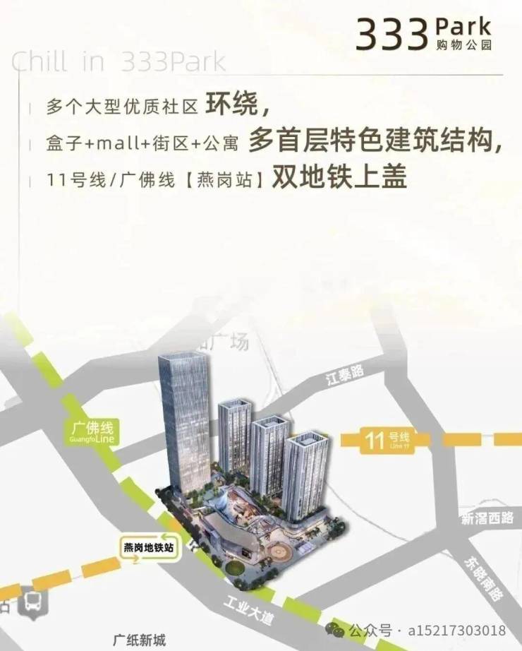 项目位于海珠工业大道中333号,广佛线燕岗站D出口出站即达,是一个不折不扣的地铁上盖项目。