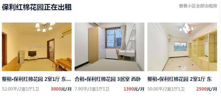 在贝壳网上搜索可见,保利红棉花园目前租金不高,52平方米的两房单位租金为2500元-3000元/月。