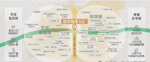 保利翔龙天汇坐落于广州第三发展中轴线“科技创新轴”上,处于天河智慧城和黄埔科学城的交汇之处。这里汇聚了金融总部、人工智能、数字经济以及智能制造等产业,形成了一个充满活力和创新力的区域。随着未来产业布局的成熟,该区域有望承载超过1万亿元的GDP,成为广州经济的重要支柱。