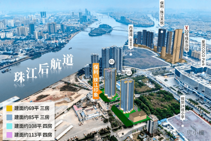 保利珠江印象是央企保利在白鹅潭商务区打造的刚需刚改盘,位于荔湾区东沙片区汇盛路与本草一路交叉口,紧邻珠江后航道,属白鹅潭经济带核心辐射范围,是保利发展在白鹅潭沿江总部经济带核心布局的“印象系”力作。