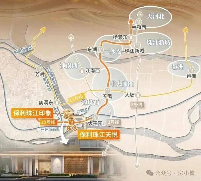 项目距离在建的地铁10号线东沙站约700米,预计2025年底开通,未来4站可直达中山大学,6站直通珠江新城。