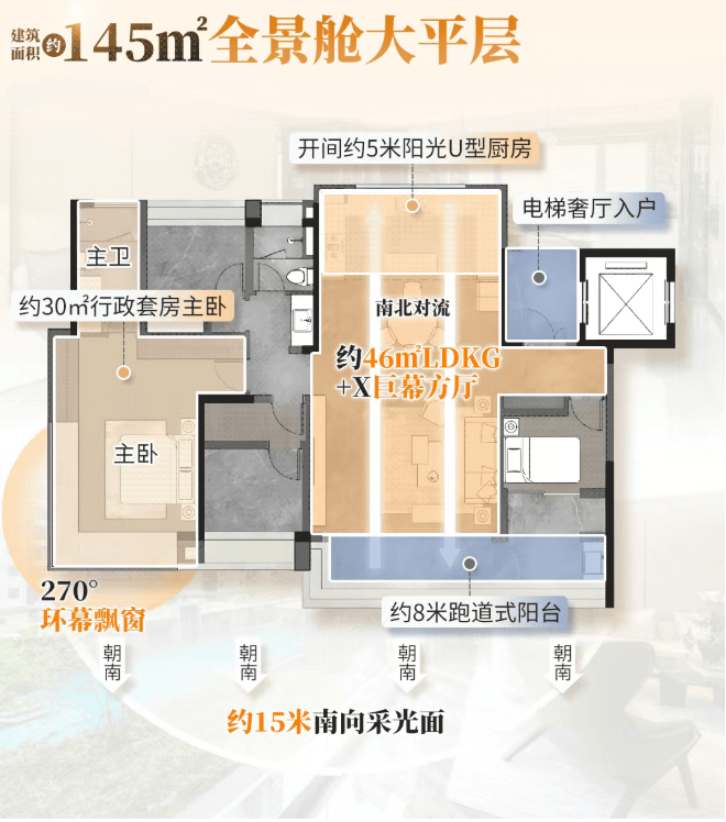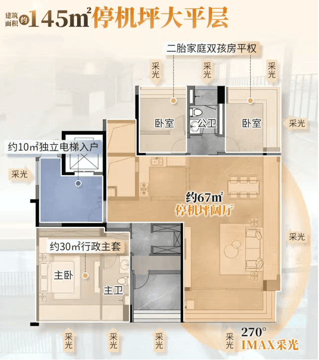约145㎡停机坪大平层,约67㎡LDKG一体化大客厅,270°环幕采光