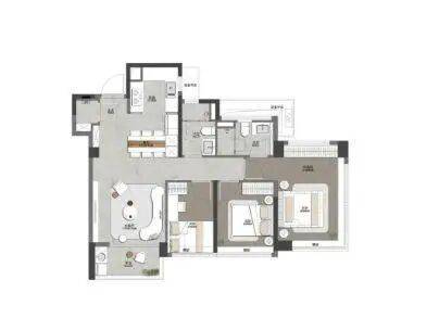 绿城馥香园规划五栋全南向住宅,其中1#为2T5户型,2-6#为2T4,每栋32层。主力户型为80㎡-130㎡三至四房,四房户型占比约八成,使用率可达115%。户型设计强调空间高效与舒适性,动静分区合理,南北通透,采光良好。部分户型配备独立入户花园及宽景阳台,最大化利用景观资源。社区园林、街角公园及滨河景观,使每户住宅都可享受绿色与景观视野。整体布局兼顾多代家庭使用,既适合年轻家庭,也适合改善型家庭置业需求。通过精细的空间设计与景观布局,业主可享受高品质居住体验,同时体现绿城对生活美学的坚持。