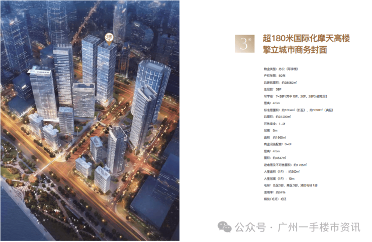 目前项目在售的3号楼写字楼产品总高38层,写字楼整层面积约1054-1060㎡,可整层出售或者半层500㎡出售,写字楼仅有少量楼层可以选择,已经全部都是毛坯现楼交付状态。