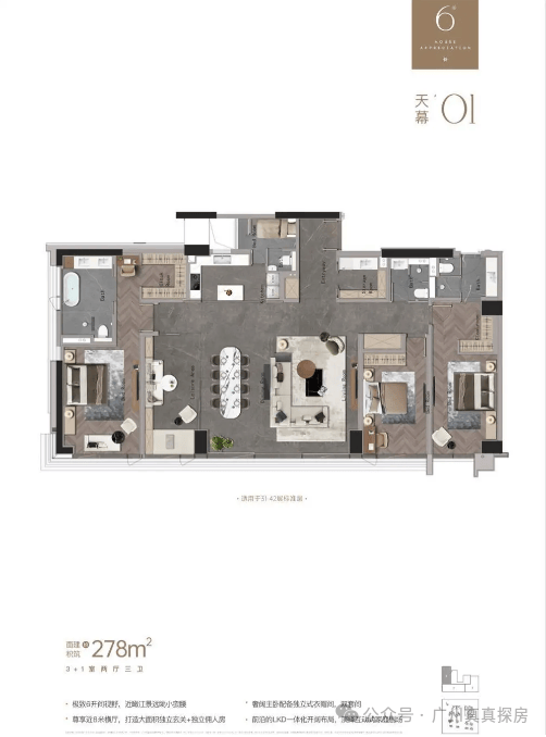 项目聚焦生活场景和高阶需求,通过对城市高阶人群生活品质进行探求,洞悉他们对生活的理解。在空间的利用中,以云端LDK设计,将美好场景“最大化”的展开,近8m横厅,超大采光面融与IMAX级阳台,将珠江水景与金融城繁华纳入其中,实现城市景观效果最大限度呈现。