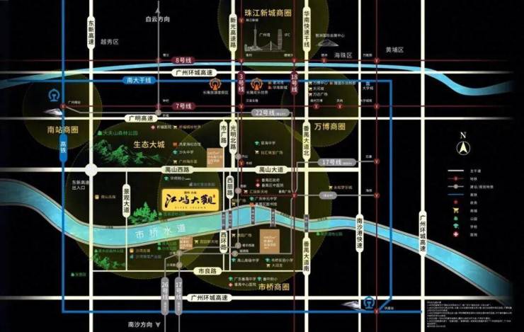 北邻万博 CBD ,西侧广州南站商务圈 ,南邻南沙经济发展区 ,东侧接驳东莞、深圳。