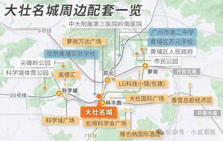 项目位于科学城板块核心位置,周边配套非常成熟,周边有网易、创维总部、科学城集团等公司总部,而且小区旁就是万达广场,距离地铁也不算远,项目旁边就是华南师范大学复式黄埔实验学校南校区,目前也已经开学。