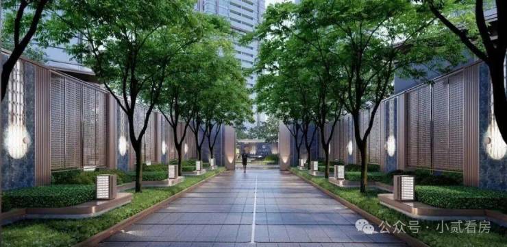二期共规划6栋楼,41-47层高,采用蝶形楼+围合式布局的组合,相对比一期巴掌大的园林绿化,中间还插了A1栋楼王,二期的绿化面积相对集中,楼间距也更加宽阔,舒适度自然也提升了,也能有效避免彼此的视野遮挡。