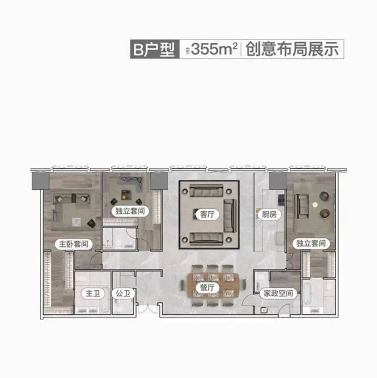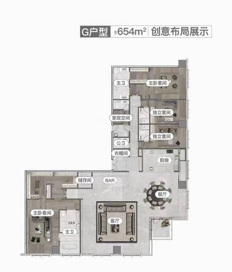 建面约654㎡户型,更是大手笔打造270°江景面,揽获金融城至为阔绰的江景景观。无论处于室内任何空间,都能沉浸于珠江的环抱中。极奢华的空间尺度,足以满足塔尖人群滨江奢居、社交接待等需求。