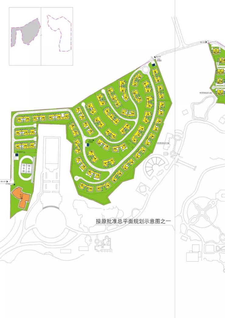 拟调整的规划,则有126栋3层别墅+8栋2层别墅,大致以L型结构分布,其中部分别墅朝向由东西改为南北。