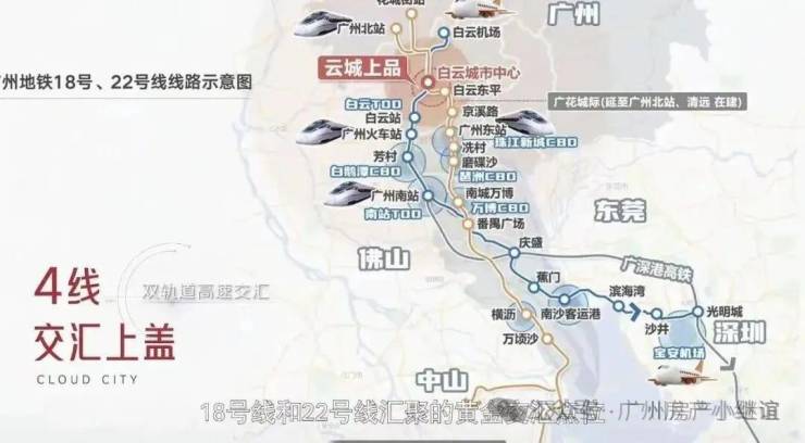 云城上品位于白云城市中心站,这里汇聚了两条全国仅有的160公里/小时高速地铁线——18号线和22号线。