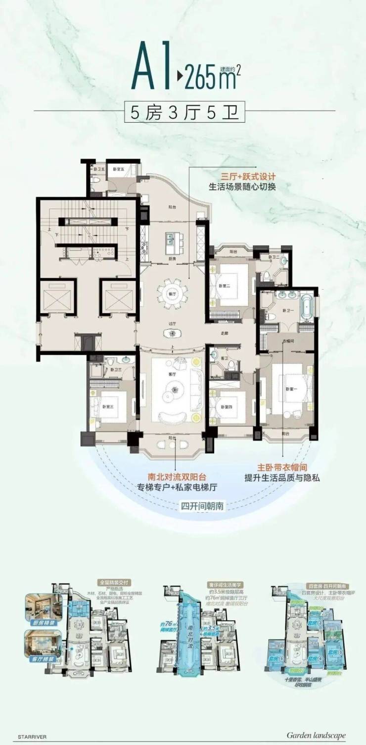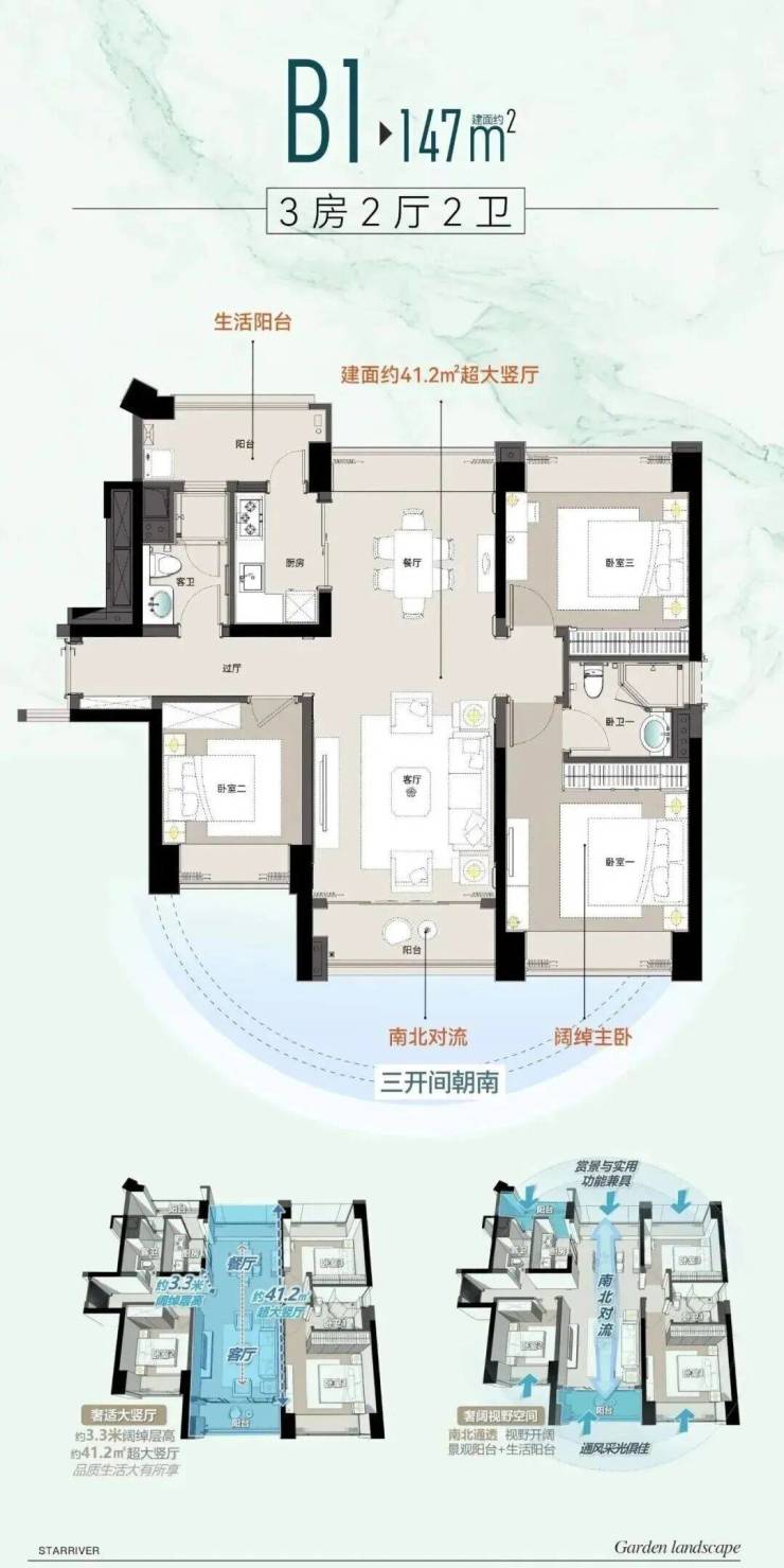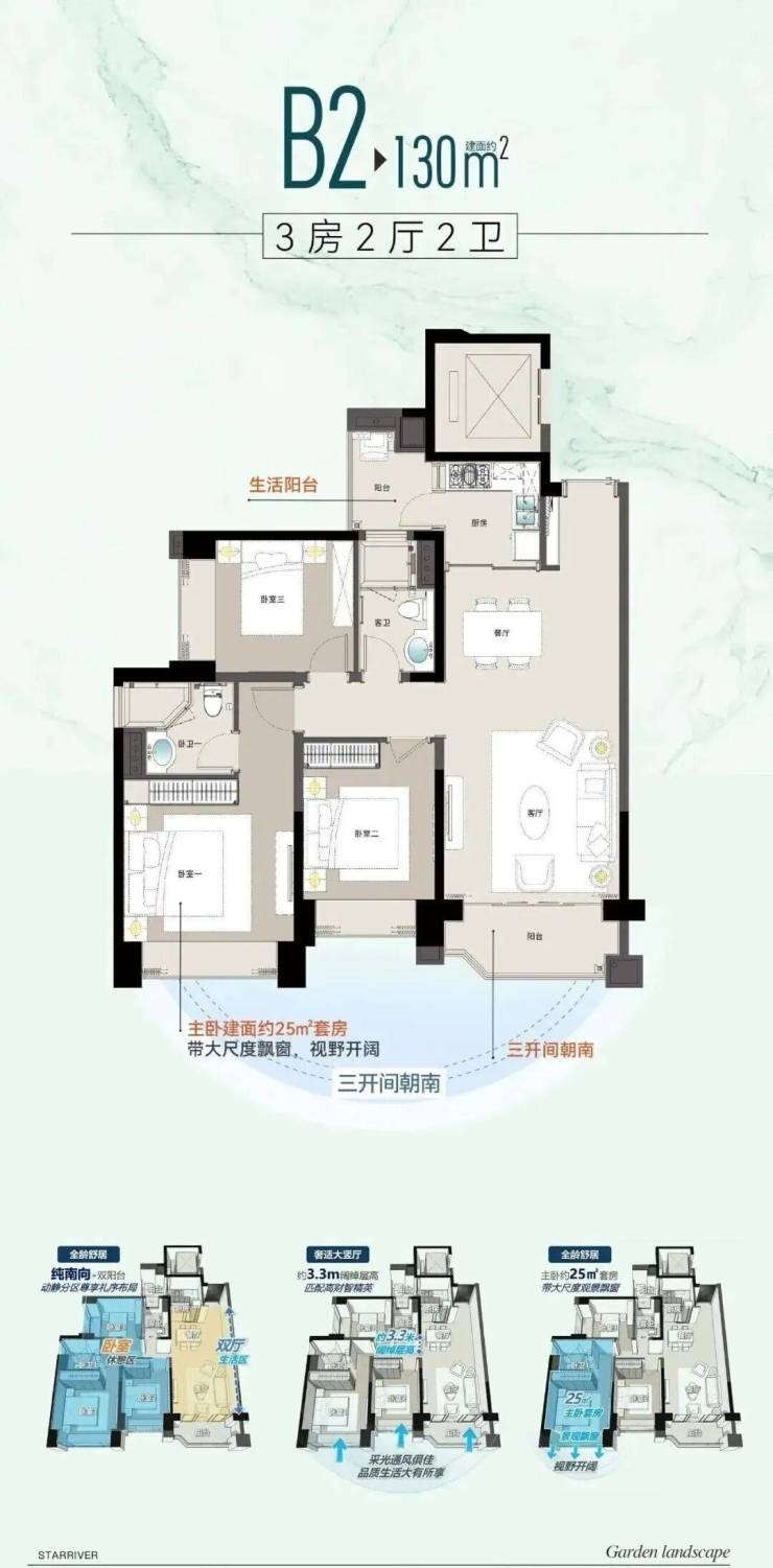 星河湾半山的户型整体偏改善/豪宅定位,最小面积130方起,设计上维持了星河湾一贯的“老钱风”,户型设计结构整体都很方正,房间都很大,采光通风都非常不错。