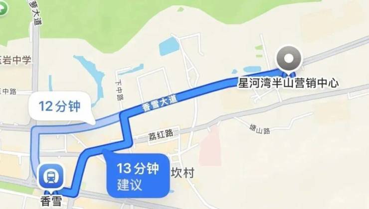 自驾出行很便捷,小区紧邻香雪大道和玉岩路,连接开创大道、开源大道等主干道;乘坐地铁方面,最近的是6号线的香雪站,要通过小电驴接驳一下。