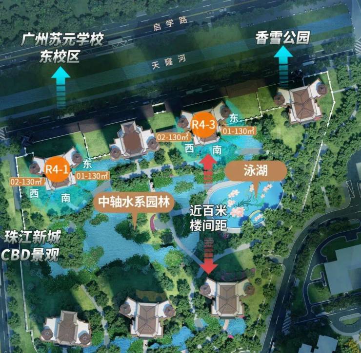 星河湾半山位于黄埔区启学路以南、玉岩路以西,毗邻香雪公园;占地面积越79万平方,容积率4.37,绿地率36.5%,规划约5000户商品房;