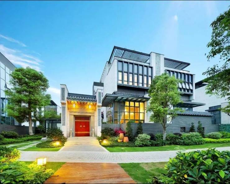 把宅院大门、花格窗、青石雕刻等传统的岭南元素与现代建筑、自然环境完美融合,打造中国特色的岭南院墅。