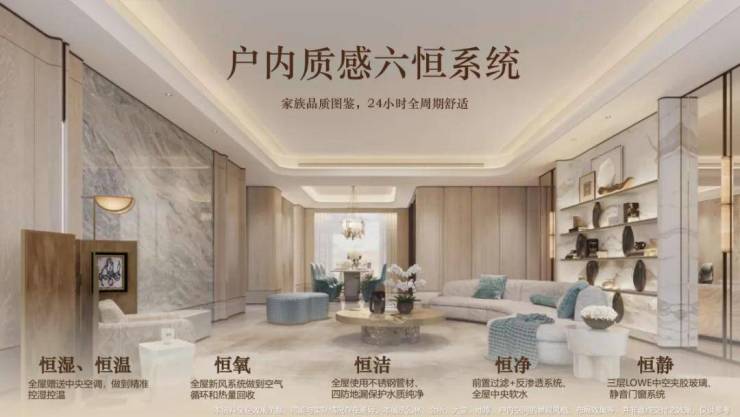 室内,保利创新式打造了六恒系统,包括全屋赠送中央空调,全屋新风系统、全屋中央饮水等,创建会“呼吸”的科技人居,更是对「好房子」标准的超前实践。