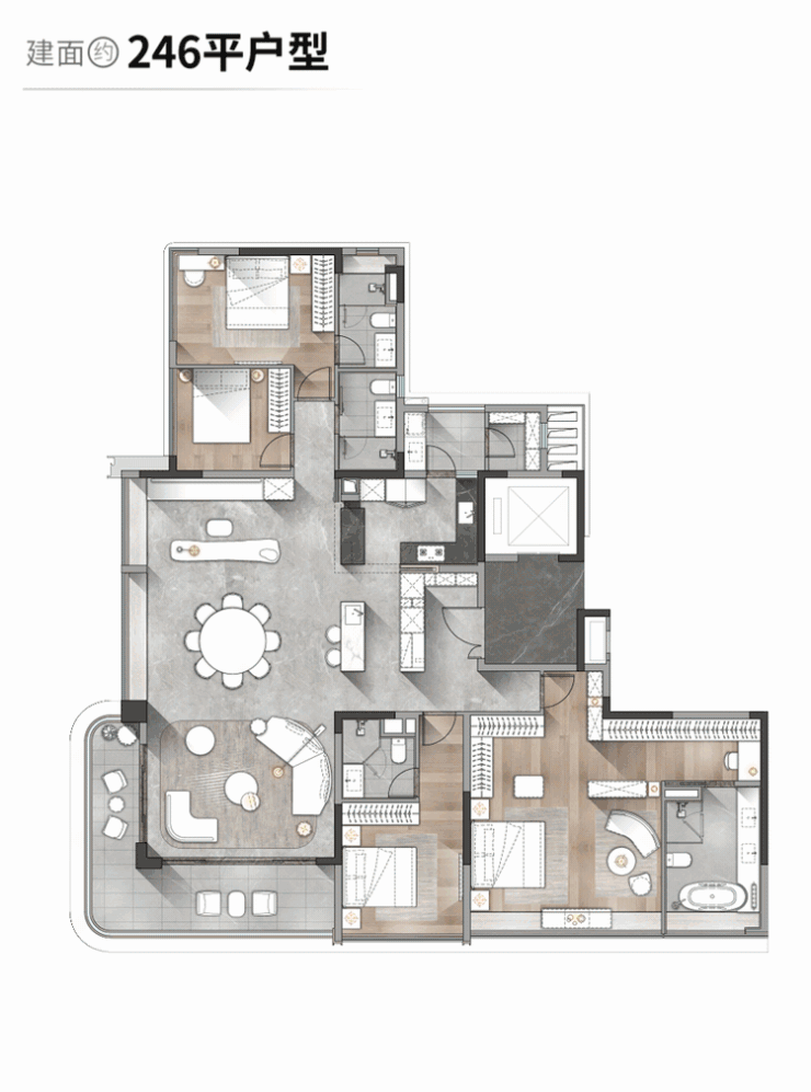 建面约200平+的户型,就做出了“X+1”定制空间,业主可以根据自己需求,定制生活场景。