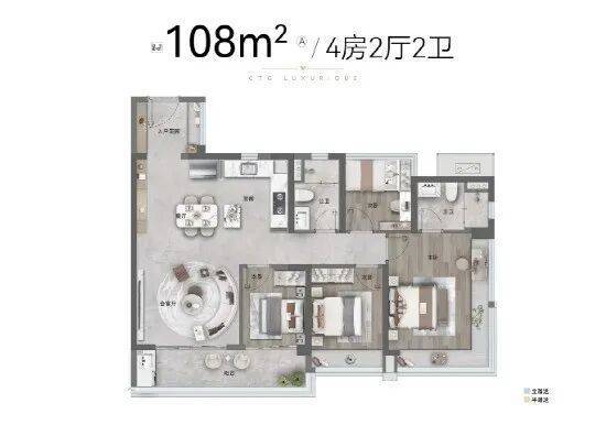 综合素质至能打的莫过于约108㎡户型,高得房率之外,兼具全屋高定交付标准,中央空调、精工厨房、齐全的收纳柜,基于生活的洞察将空间设计一步到位,对于二孩家庭实用性非常之高。