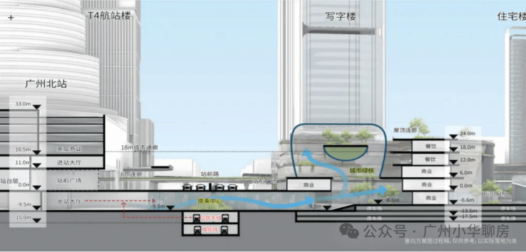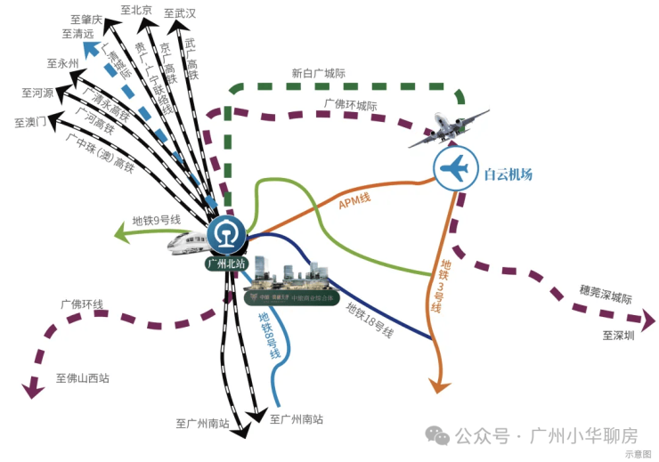 很重要的一点是,它还将依托白云机场T4航站楼、APM线,打造以空铁融合、站城一体规划北站商务区,重点发展金融、商务服务业、酒店业等产业。