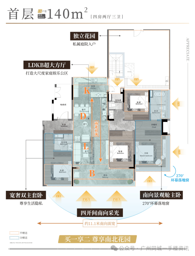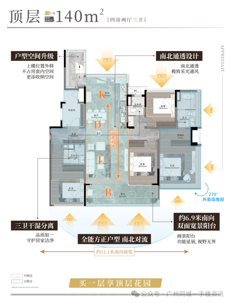 建面约140㎡ 四房二厅三卫 超110%使用率 全南向