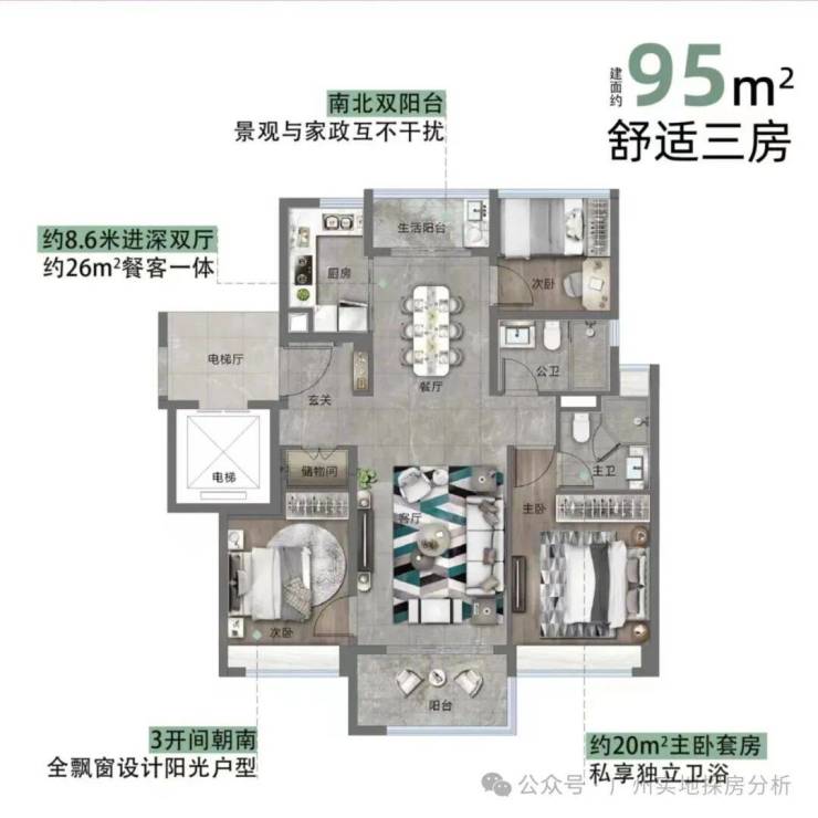 户型:小高层95㎡/125㎡三四房、超高层96㎡三房、125㎡/141㎡四房、底叠150-200㎡三四房