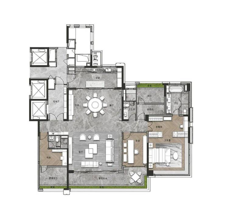 我们再来看看此次加推的268平的大面积户型,作为项目的旗舰,暗藏着哪些巧妙的设计?