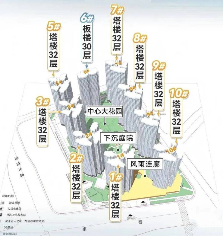 其余8栋都是32层塔楼。