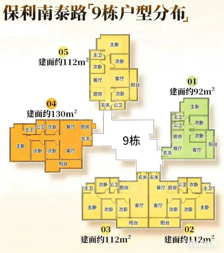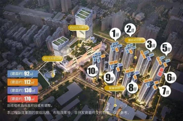 面积段分为92㎡、112㎡、130㎡、170,主打刚需、刚改户型。