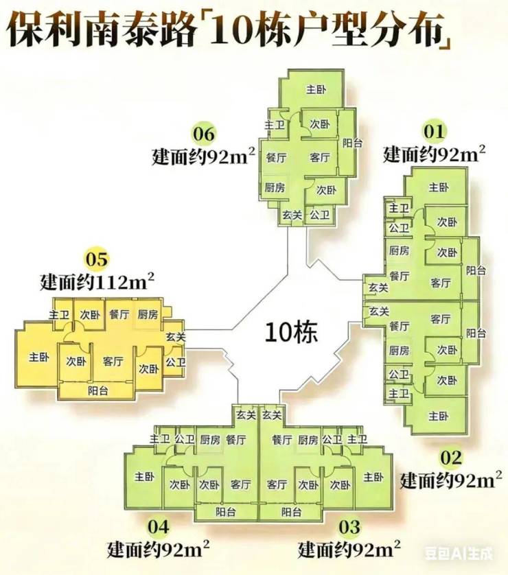其中,#1栋、#10栋,#2栋,三梯6户;#3、#5、#7、#8、#9栋均为两梯5户。