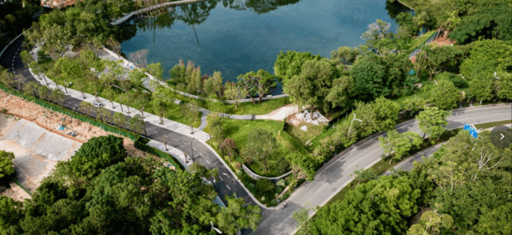 •通过三重净化,使水质达到地表二类饮用水标准,湖水能见度达1.5米。未来畅享水上单车、皮划艇等亲湖运动。