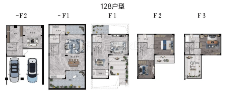 【128㎡户型】联排设计、前庭后院、观星露台、采光与私密性极佳;超高附赠率,有天有地有花园,私家车位入库!(以下图片和视频仅作参考,实际交付为毛坯)