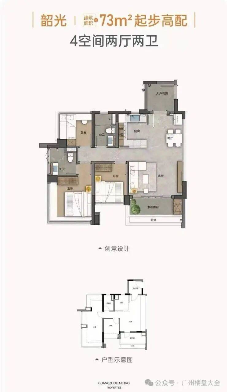 户型面积:73m²-87m²-91m²-109m²-127㎡,均为全南向4/5空间两厅两卫