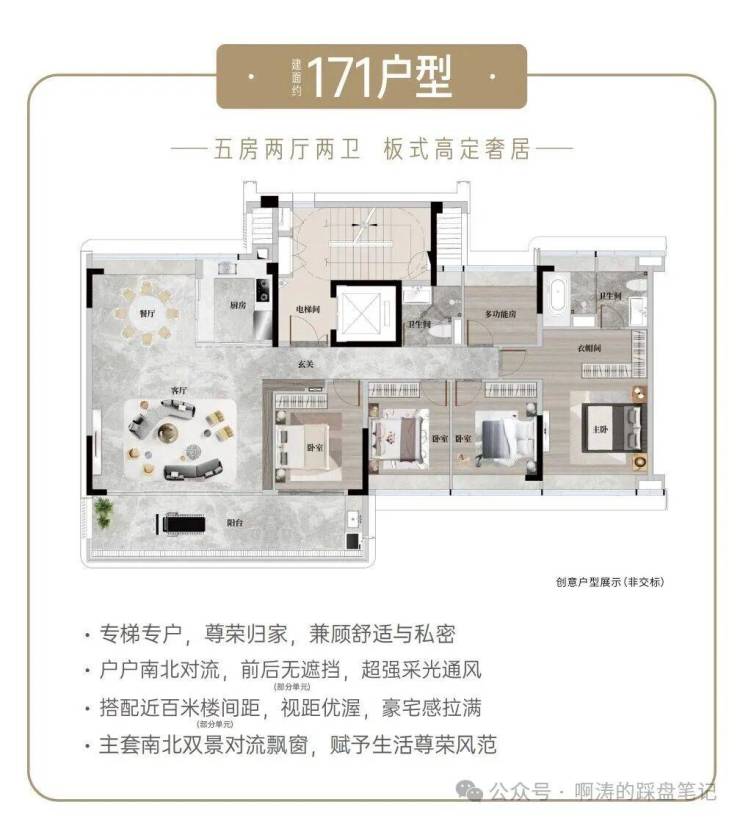 全社区专梯到户四至五房奢居产品,大面宽、大进深、纯南向专梯到户奢宅
