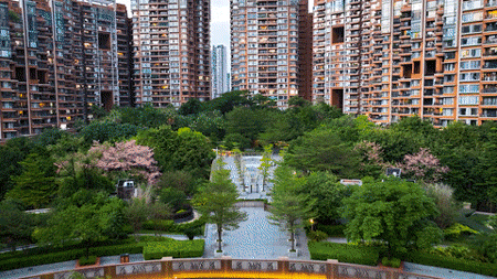 项目占地约11万㎡,容积率仅2.9,为珠江新城中罕见的大型低密度国际豪宅社区。南北最长约450米的超宽楼间距,无遮挡尽揽4.8万㎡中央私家园林景观。