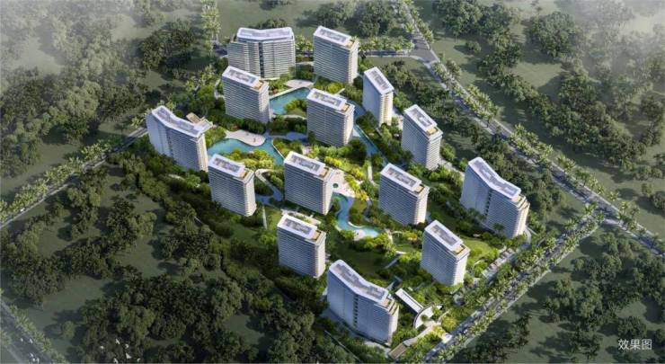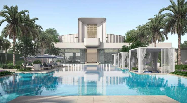 项目的 14 栋住宅楼采用围合式布局,打造了最远约 190 米的奢阔楼间距。国际度假生活馆后期将打造成业主私享会所,配备室内恒温游泳池、健身房、棋牌室、瑜伽室等功能区,为业主提供高端的健身和社交场所。