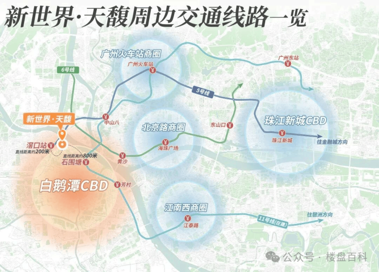 地铁——距离广州地铁5号线滘口站仅400米的距离,步行中间的街区公园6分钟即可到达,12个站到达珠江新城,无需换乘,1个站换乘6号线以及11号线,去往越秀天河等广州核心区都非常方便;