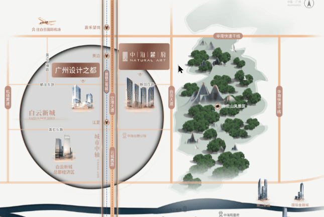空港大道全长18.3公里,串联起白云新城南总部集聚区、广州设计之都,空港经济区等重点功能片区。中海麓府,位于空港大道旁,近享黄金中轴价值潜力,见证白云蝶变。