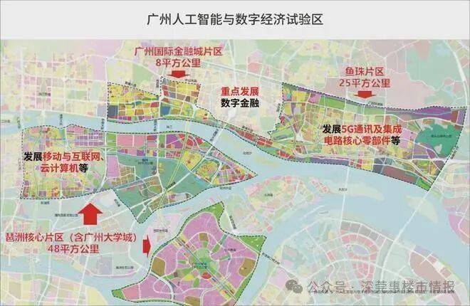 打造粤港澳大湾区金融科技先行示范区,同时规划为人工智能与数字经济产业融合发展区,与琶洲、鱼珠片区融合发展组成“一江两岸三片区”黄金三角