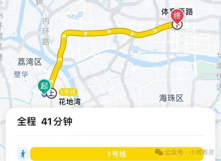 地铁去往珠江新城:步行至地铁,1号线直达体育西路,全程11个站,耗时41分钟。