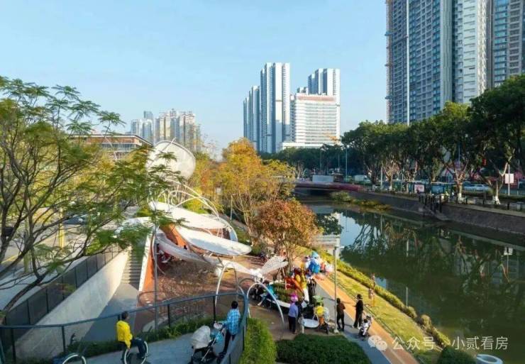 万科·理想花地到处都是公园,有约2.5公里滨水绿带,也有27公顷立体生态空间,老人家有逛不完的大氧吧。
