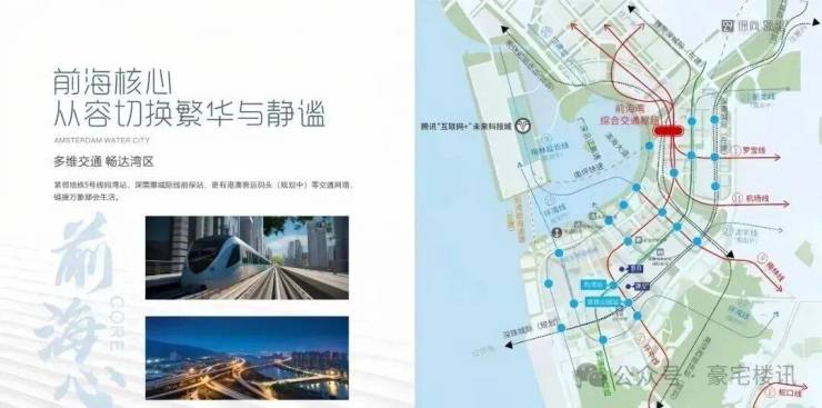 交通配套:项目距离5号线荔湾站步行400米。此站直接乘车通勤前海、宝中、留仙洞、深圳北、机场比较方便。此外,将还有15/21/27、穗莞深城际等多条轨道交通串联前海与其他重点片区。