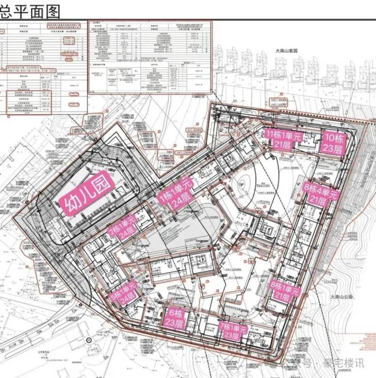 总用地面积5.3万㎡,总建筑面积约25万㎡,容积率2.85,其中住宅13万㎡,共763户,套均建面约172㎡,车位1979个。其中,商业3000㎡、幼儿园5000㎡(独立占地面积5400㎡,18班)、物业管理用房280㎡,建筑高度限高80米。
