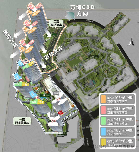 目前二期全新户型在原有基础上再进化,即新规迭代为超新规,更有万博板块断货已久的爆款105㎡即将升级回归!
