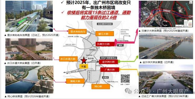 金沙洲的区位,其实都还行,横跨广州白云区和佛山南海区,临近荔湾,和广州的主城区相隔不远,尤其是广钢新城、白鹅潭、白云新城这些,对于不少人来看,这样的距离,是符合通勤距离的。