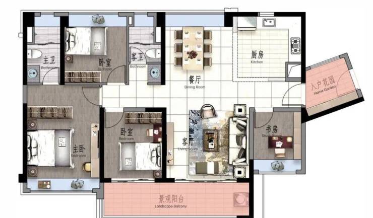景观大阳台连通次卧--双套房设计,三代同堂更从容
