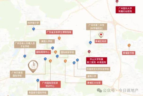 教育方面;项目3公里范围内集聚市二中、爱莎国际学校、贝赛思国际学校、华南师范大学附属黄埔实验学校(南校区)、美国人学校等多所国际院校,营造双语教学环境,培育与国际接轨的菁英人才。