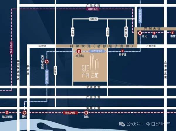 交通方面;项目位于黄埔区科学城中心研发的办公组团,南侧邻近连接广东主要城市的广深高速,北侧毗邻科学大道,交通便利。20分钟直达广州金融城、琶洲;30分钟直达珠江新城、新塘TOD、40分钟达广州南站;广州东、广州白云机场。