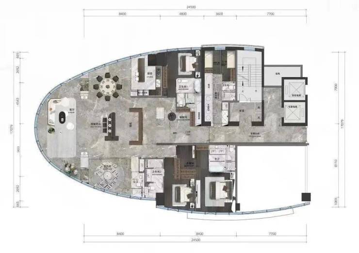 这个户型的设计虽然也是类似于游轮船头,但与A户型还是有点区别。