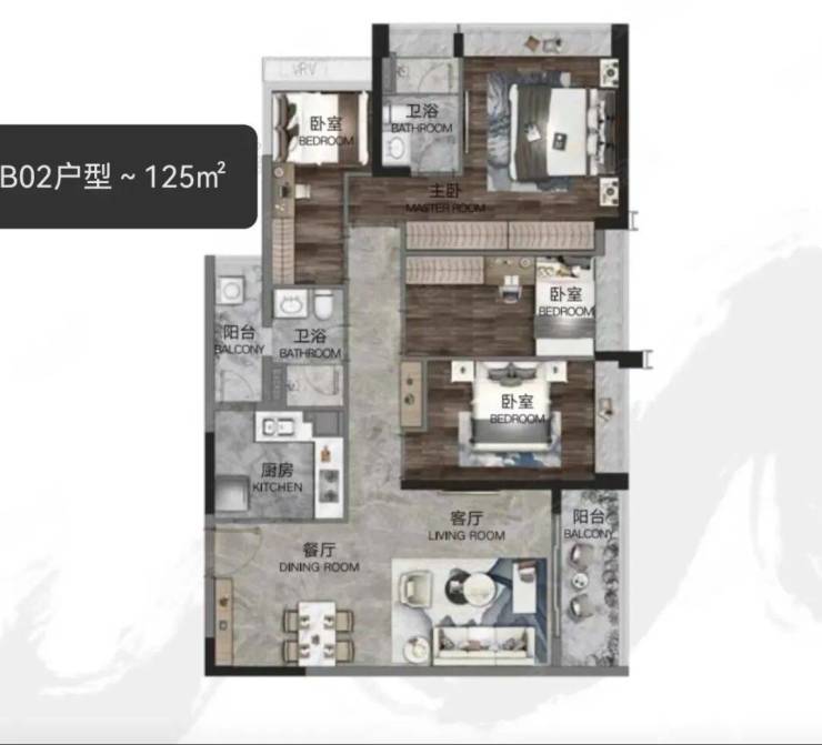 在售B栋,全新【观玥】组团在售60-140㎡二至四房现房,在售情况如下