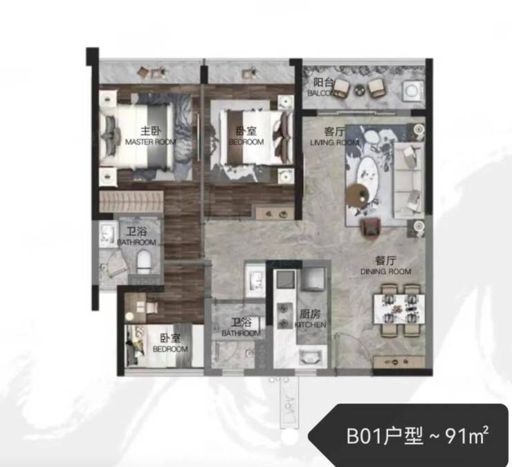 外立面现代中式建筑风格建筑外立面为著名的冼剑雄老师手绘设计,立面材质大面积玻璃幕墙,通透质感。这种设计,不止颜值高,实用性也很强。类玻璃幕墙,成本比普通涂料高了近一倍,但透光性也更强,能保证每一户的采光,居住体验会更舒适。